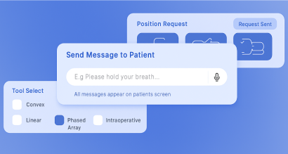Send messages, trigger visual position requests, and switch tools on the fly, all designed to keep sessions seamless, patients informed, and sonographers in full control.