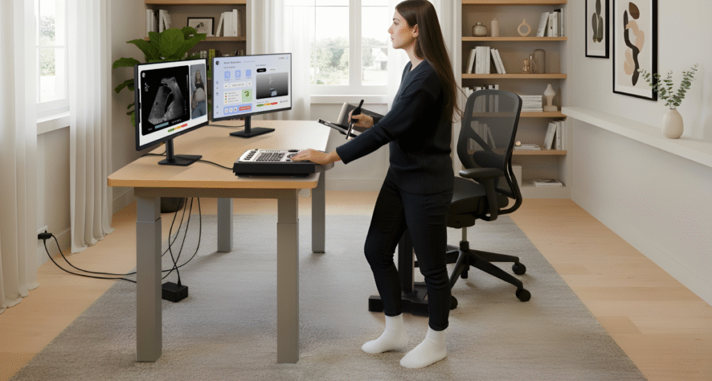 SonoSystem empowers sonographers to work from anywhere, minimize physical strain, and unlock new income opportunities through flexible, remote ultrasound scanning.
