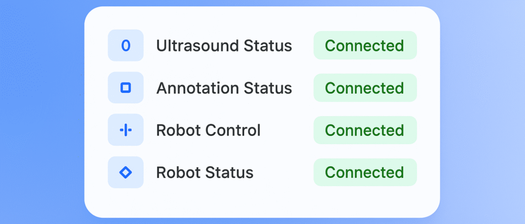 Ultrasound and robot statuses are always illuminated, giving you real-time clarity so you can make informed decisions without second-guessing.